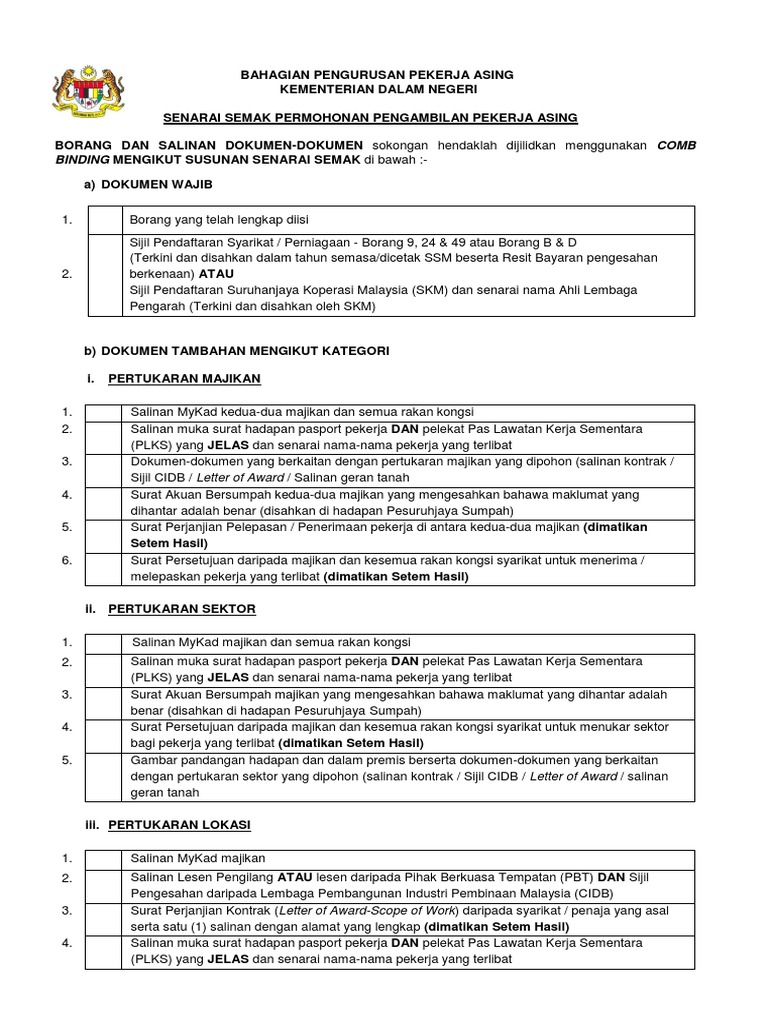 Senarai Semak Permohonan Tukar Lokasi Pdf