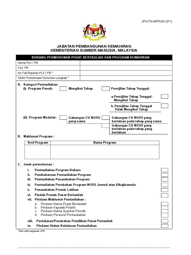 Borang Permohonan Tahap Tunggal Pdf